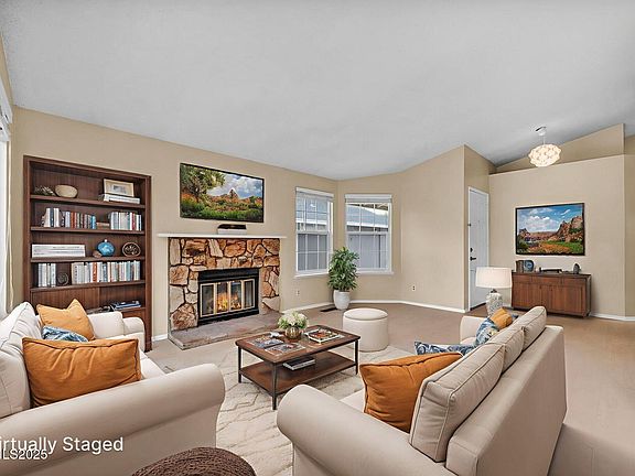 Welcome to this charming Northwest Reno home, ideally located near schools, shopping, and parks. This well-maintained property features a bright kitchen with a lovely garden window. Enjoy cozy evenings by the wood-burning fireplace in the inviting living room, or step through the sliding glass door to a private back patio with low-maintenance xeriscape landscaping. Recent upgrades include a newer water heater and furnace for added peace of mind. The primary suite offers a convenient vanity and upright shower, and the washer and dryer are included for your convenience. Best of all—no HOA!