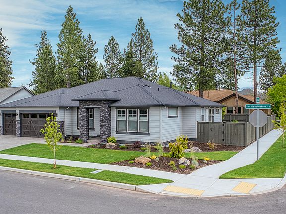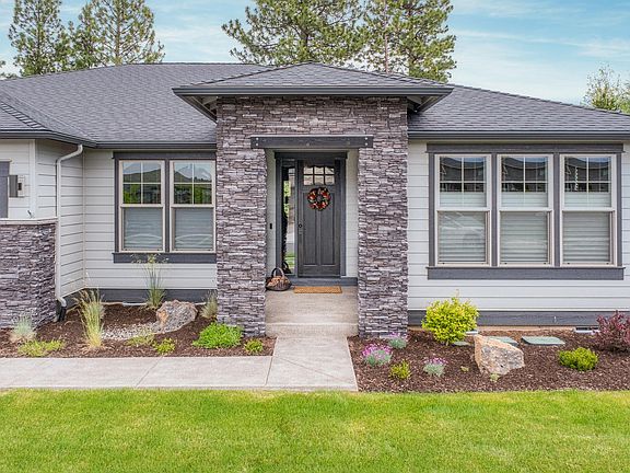 Elegant, newly constructed single level home situated on large corner lot in Bend's premier riverfront community, River Vale. This Pahlisch Home was the model for the award-winning Sandoval floor plan featuring all the upgrades expected from a model home and more! Includes coffered ceilings with crown molding, SS KitchenAid appliances, solid surface countertops, high-end window coverings, built-ins in formal dining & great room, laundry room with sink & storage. The triple car garage features ceiling racks & ample room for storage. Spacious & private master suite with luxurious bath with soaking tub & large walk-in closet. The FLEX room is the perfect casual retreat with built-in wet bar & wine/beverage cooler. Smart Home features Ring video doorbell, high efficiency water heater & furnace/AC systems. Convenient SW Bend location accommodates the Bend Lifestyle within minutes of the Old Mill District, downtown, recreation trails and the Deschutes River. $2500 landscaping credit.