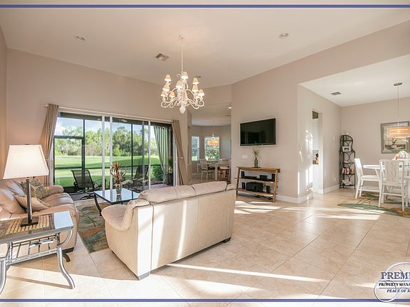 A screened patio/lanai makes a great place to read a book while watching the golfers stroll by. It overlooks the fifth hole of the Mustang Golf Course which was designed by Lee Trevino. It is decorated with twelve lakes and has been rated 4 stars by Golf Digest Magazine.