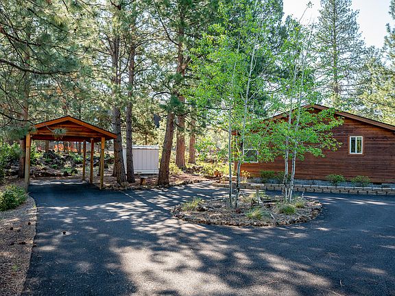 Situated in the southwest region of Bend and moments away from the renowned Old Mill, Downtown area, River Rim Park, the breathtaking Deschutes River Canyon, and easily accessible from Highway 97. Just over 1/3 acre parcel, nestled along the Arnold irrigation canal. Native landscaping, complete with a drip system, native flora, and majestic ponderosa & aspen trees. Step inside this cozy lodge-style residence, hang out on the generously sized covered front porch, perfect for unwinding and breathing in the tranquility. The harmoniously matching carport seamlessly complements the residence, while a circular driveway offers additional parking options (recently paved). Experience the essence of Central Oregon with natural accents that adorn the interior, including a captivating river rock fireplace, fir wood beams, enchanting cedar wainscoting, and charming pine window accents. Central AC, Forced air heat, built in microwave, security system, dishwasher, washer, dryer, and spacious rooms