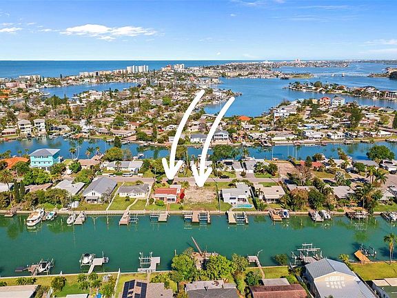 Discover the perfect blend of coastal living and waterfront charm with these two combined lots TOTALING 1/3 ACRE and offering 120 FEET OF PRIME WATER FRONTAGE land to build your dream home. Nestled along the picturesque Intracoastal Waterway, this delightful two-bedroom, two-bathroom home spans 1,273 square feet. The inviting and functional layout provides a comfortable retreat for effortless coastal living. This property boasts a new dock made from durable composite material, featuring a 10,000-pound boat lift. With quick and easy access to the Gulf of Mexico, it's a paradise for boaters and water enthusiasts. The second lot includes another newly constructed dock with composite decking, a 13,000-pound boat lift, and an 8,000-pound jet ski platform. Enjoy the waterways right from your doorstep with ease. Situated in a vibrant neighborhood with many new homes under construction, this area is buzzing with growth and opportunity, promising a dynamic and evolving coastal community. Customize your property to suit your lifestyle. Live in the existing home while building your dream home next door, or remove the current structure to create a spacious waterfront estate. Embrace the laid-back beach lifestyle with sun-drenched days, water activities, and breathtaking views right from your doorstep. This property offers a rare opportunity to own a piece of paradise in the heart of Madeira Beach. Whether you're seeking a tranquil retreat or envisioning a larger waterfront estate, this property has the potential to fulfill your coastal dreams. Don't miss out on this rare opportunity! Make this slice of paradise your next home.