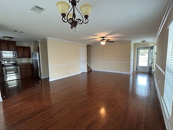 Comfort meets convenience in this beautiful 2-story home perfectly nestled within a friendly neighborhood in Hinesville, GA. This property boasts a privacy-fenced back yard, creating an ideal sanctuary for children to play freely or for hosting weekend barbecues with friends and family. As you step inside, you'll be greeted by an open floor plan that seamlessly blends the dining and living areas, providing an inviting atmosphere. The heart of the home is the spacious kitchen equipped with all stainless steel appliances and ample counter space a chef's delight! Retreat to the generously sized bedrooms, including a luxurious master suite featuring double sink vanities in the en-suite bathroom. For added convenience, you'll appreciate the dedicated laundry room that makes chores effortless. Step outside onto your covered back patio, where you can sip your morning coffee or enjoy evening sunsets. This lovely home is just a short stroll away from community amenities such as a swimming pool and playground. Pet friendly!* (*One time, non-refundable $250 may apply, per pet, 2 pets limit). Schedule your private tour today and discover why this charming home should be your next move.