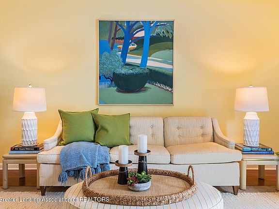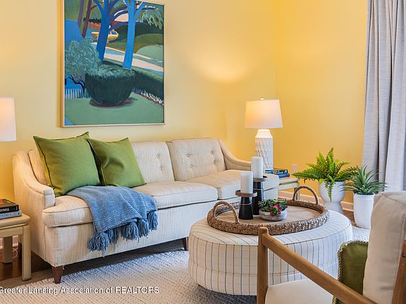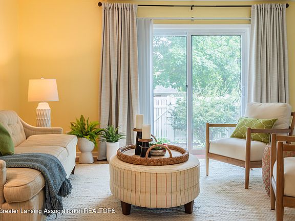 Immediate occupancy. East Lansing condo with close proximity to MSU, Capital Loop and 1-96 and I-69 corridors. Excellent floor plan, sunny kitchen, generously sized primary bedroom and additional bedroom on second level -both large enough for king beds, 1.5 bath has a private courtyard, finished lower level, 1 car garage (wired for electric car), gas fireplace, and more. Private enclosed courtyard. COA monthly fee includes exterior maintenance, snow removal, water, sewer, and trash service. are reserved but rods remain.
