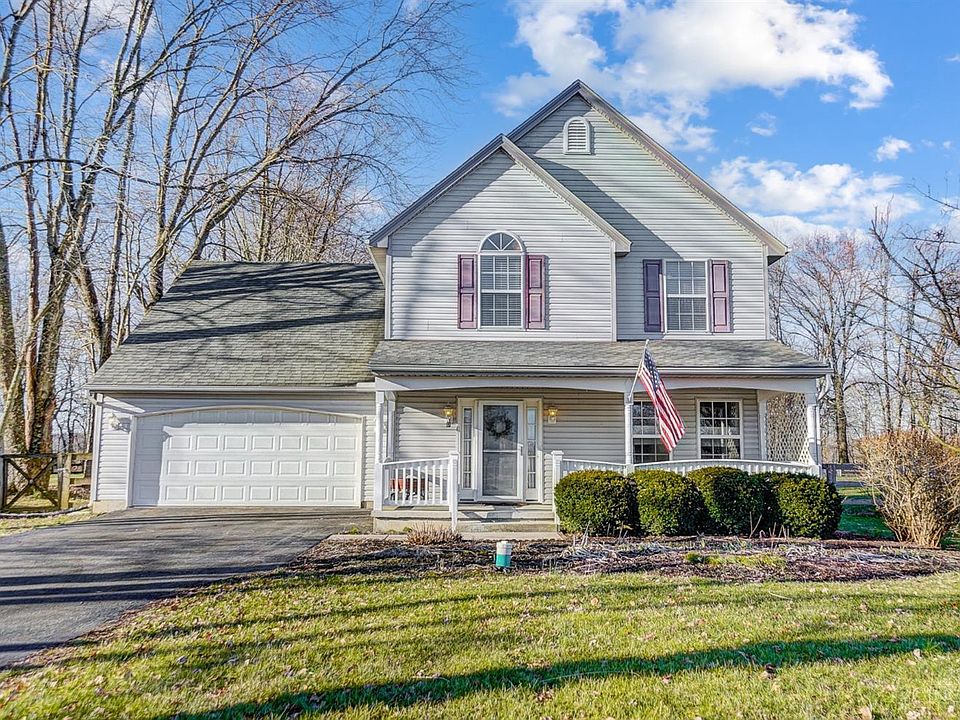 Beautifully maintained two-story on 1.26 acre tree lined lot. New roof, inviting front porch, spacious family room, fully equipped eat-in kitchen w/ counter bar and large walk-in pantry. 4 bedrooms, 2.5 bath w/ master ensuite and 2nd floor laundry. Walk-in closets in 3 of the bedrooms and storage continues with an oversized 2 car garage and 10x20 shed with loft. Blacktop drive and fully fenced in backyard. Playset stays. Highly sought after neighborhood in Clinton-Massie school district.