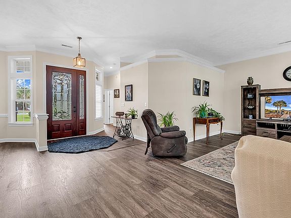 BEAUTIFUL 4BR/2.5BA HOME SITUATED ON A QUIET CUL-DE-SAC. This fantastic ready-to-move-in home is semi-custom home was built by a well-known local builder, Charles Flynn/Sunbelt Homes. If quality of construction is important to you, look no further! Attention to detail and upgraded materials will be found in this Brookfield floor plan which has a split bedroom layout and a large finished Bonus/Bedroom over the garage complete with a half bath, closet and built-in shelving. Take note of the well-manicured landscaping and the brick front as you come to the covered porch leading to a beautiful mahogany front door entrance. Once you enter, the foyer opens into the Living Room to the left and formal Dining Room on the right. The kitchen includes a breakfast nook, counter bar, all wood white cabinets, built-in pantry, granite counter tops, and desk area. All appliances are included and are only 2-3 years old. The Family/Great Room has gorgeous LVT flooring, a gas fireplace which is flanked by custom shelving and cabinets and a wonderful view of the private backyard through the bay window. In the spacious Master Bedroom, which is on the first floor, you will find another set of bay windows allowing for a small sitting are and overlooking the backyard. The Master Suite includes two walk-in closets, and large bath with shower, jacuzzi tub, built-in linen closet, double sink vanity, private toilette, and ceramic tile flooring. The large Laundry Room includes a front load washer and dryer with pedestal drawers for storage, white cabinets, and ceramic tile floors. On the other side of the home you will find two more bedrooms and full bath. This second bathroom has a newly installed walk-in tiled shower which is handicapped accessible! This well-built home also has high ceilings and transient windows allowing for lots of natural light. The 2-car garage has a side entry door, a utility sink and plenty of room for storage. Sellers have added a completely new HVAC system. The home has a new roof (2019) and water heater (2018). an irrigation system, gutters. The Pebble Creek community has a wonderful amenities center with a pool, club house, and gym and is on the International Golf Club. THIS IS A SUPERIOR BUILT HOME, FAIRLY PRICED, AND IS READY FOR YOU TO ENJOY!