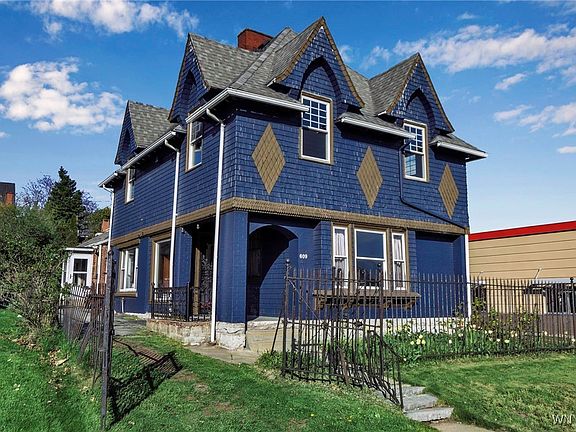 Welcome to 609 Busti Ave, a character-filled two-family home perfectly positioned across from Front Park with no neighbors across the street just moments from Downtown Buffalo, the Peace Bridge, the future Ralph Wilson Park and D’Youville College. Rich in architectural detail, the home showcases original woodwork, exposed brick, and a beautifully crafted facade. The property features a front and rear unit, offering flexibility for investors, owner-occupants, or multi-generational living. The spacious front unit lives like a single-family home, featuring three large bedrooms, 1.5 baths, and winding staircase leading to a third-floor loft. The rear unit offers two bedrooms, one bath, and is currently occupied by a reliable long-term tenant. Notable updates include younger roof/gutters, vinyl windows, fresh exterior paint, 2023 high-efficiency HWT/boiler combo for the front unit, and attic/basement spray foam insulation. In the back yard, relax on a spacious newer deck! This is a rare opportunity to own a beautifully maintained multi-family home in a prime Buffalo location. Offers due 5/20 by noon.