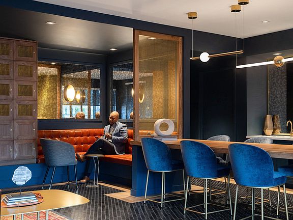 - Exterior features: Access controlled indoor on-site parking, Barbecue, Bicycle storage, Designer kitchens with contemporary cabinetry, Electric vehicle stations, Keyless entry smart home technology, Kitchen islands*, Lighted bathroom mirrors, Package Receiving, Pet Washing Station, Plank flooring, Quartz countertops, Rooftop outdoor large screen TV, Stainless steel appliances, TV Lounge, Two elevators, USB Outlets, Under cabinet lighting, Walk-in showers in 2 bedroom apartments, WiFi Ready