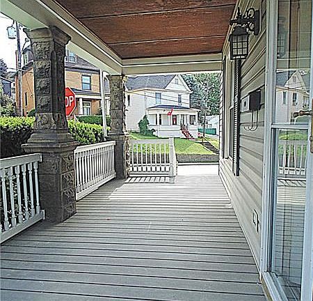 two story with many updates , the windows , siding and roof are newer, the furnace and air unit are newer, blown in insulation ,keeps the home cooler in summer and warmer in winter, cermic floors in kitchen and bath , newer carpet thru out, 20 x 8 covered porch in front with composite flooring and vinyl railing, 10 x 9 enclosed porch in rear with vinyl railing down steeps, private back yard ,one off street parking, move in ready,
