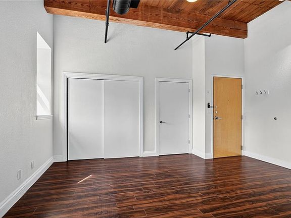 Discover this stunning studio loft that boasts breathtaking downtown views! With high ceilings and large windows, this space is flooded with natural light, creating a warm and inviting atmosphere. The thoughtfully designed closet systems maximize storage efficiency, while the fun kitchen features custom cabinets for all your culinary needs.