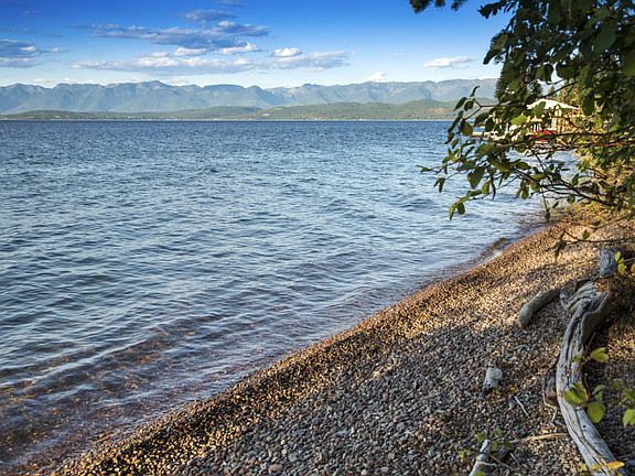 Rare 200 feet of gently sloped Conrad Point frontage on Flathead Lake. Natural gravel beach is virtually untouched and a perfect example of why north-facing Conrad Point is the most desirable waterfront on Flathead Lake. The 3b/2ba home with over 3,000sf sits on the eastern side of this two-lot parcel. Paved access, spacious floor plan and private deck with spectacular northern views.