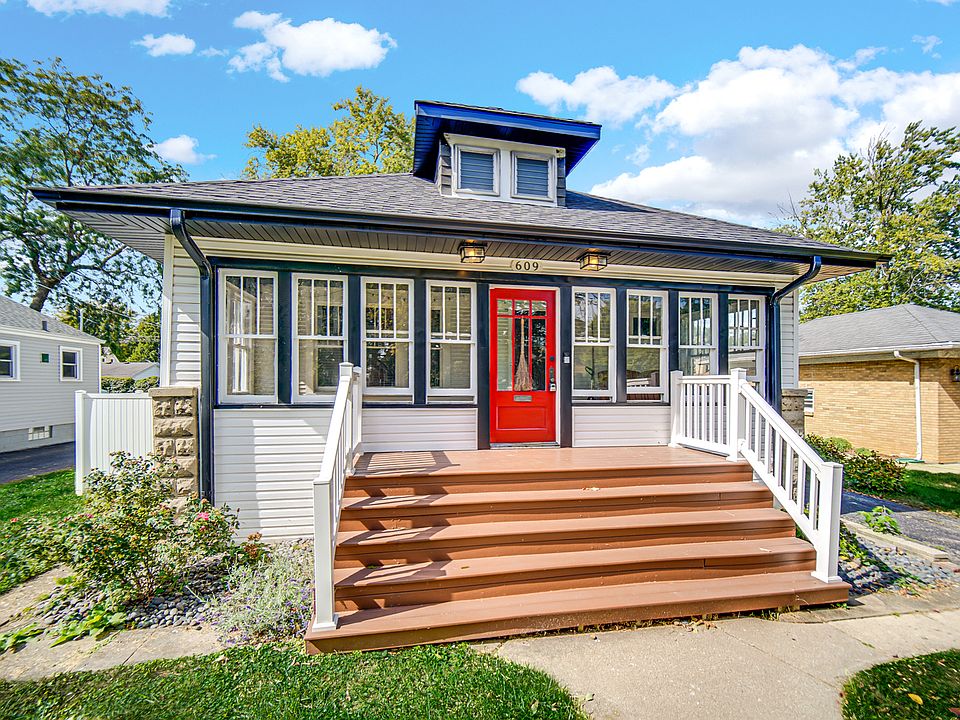 Enter into this charming 3 bedroom, 2 bathroom home in the Joliet Cathedral Area. Arched doorways, built in cabinets, and lots of charm! The cozy enclosed front porch with bench swing is the perfect spot to start your day. Kitchen has white cabinets, stainless appliances, backsplash, and new countertops. Reverse Osmosis is installed. The basement includes a bar area, Murphy bed, theater room, and full bathroom - new carpet and vinyl floors. Recent updates include: Plumbing replaced from street to home (2021), New Water Heater (2020), New Roof, Siding, Facia, Soffit, and Gutters (2020), All new plumbing (2018), New Electrical Panel (2016), and Refinished Hardwood Floors (2015). Projector and screen do stay.