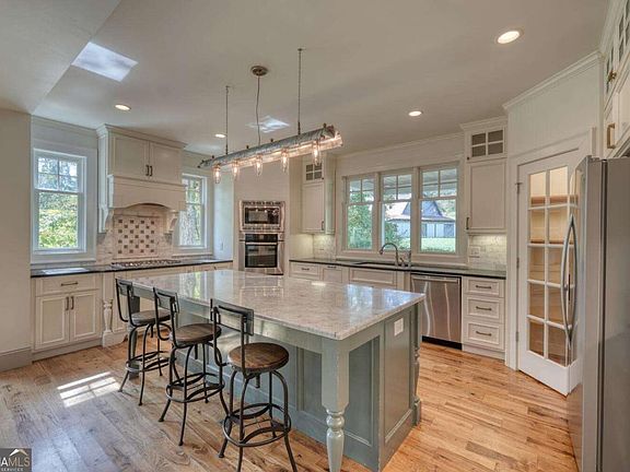 Soaring ceilingsTrey ceilingsFloor-to-ceiling brick fpPrivate officeGorgeous rock entranceGas cooktopLuxurious spa-style bath
