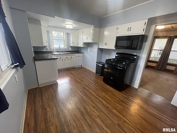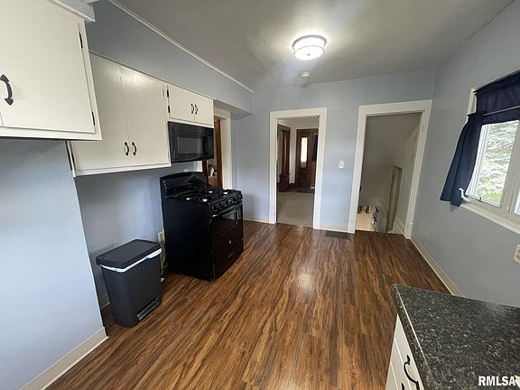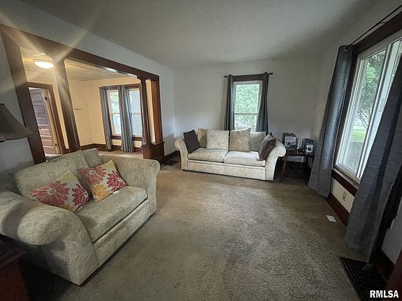 Move right into this 3 BR 1.5 BA home! Convenient first floor bedroom with a half bath that was updated in 2020. Modern kitchen with appliances that stay, but unwarranted. 2 bedrooms and full bath upper level. Lovely original woodwork and open stairway and foyer. Nice, dry basement that was freshly painted in 2019. Basement also has a tiled shower stall, an extra stool and a wood burning cast iron fireplace (never used). Open front porch for a front row view of the Hog Days parade!! 4-car garage has been freshly painted, new opener 2021, and underground electrical installed. New siding with pink insulation board, gutters and downspouts in 2023, new roof 2022, Hot water heater 2021. Home is equipped with a home security camera system.