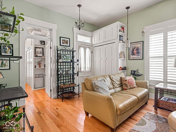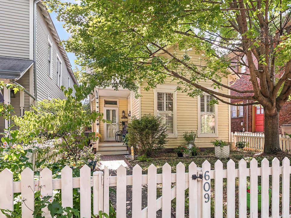 This quintessential Chatham Arch cottage blends storybook charm with modern comfort - and it's ready for its next lucky owner! Nestled on a quiet street behind a classic white picket fence, you'll love the welcoming covered front porch, generous paver patio, and lush landscaping framed by mature trees. Inside, character abounds with soaring ceilings, built-in bookshelves, transom windows, and warm hardwood floors. Oversized windows with custom plantation shutters bathe the home in natural light. The desirable main-level primary suite feels like a private retreat with its cathedral ceiling, decorative fireplace, built-in wardrobe, and spa-like ensuite featuring a tiled walk-in shower and soaking tub. The open living and dining areas flow seamlessly into a beautifully updated kitchen - the true heart of the home - complete with custom cabinetry, a spacious center island with breakfast bar, and a high-end appliance package. A rare main-level laundry/mudroom is perfectly positioned near the back entrance and second full bath. The versatile back bedroom overlooks the fenced yard and easily doubles as a home office, den, fitness space, or guest retreat. Step outside to a charming courtyard-like backyard leading to a 1-car detached garage. All this just blocks from Mass Ave and the Bottleworks District - without the burden of HOA dues! Enjoy single-level living in one of Indy's most coveted neighborhoods!
