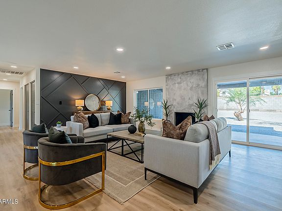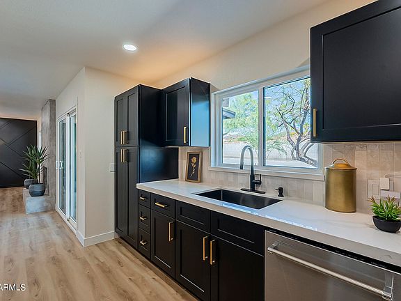 Stunning high design remodeled single level home on an oversized .25+ acre lot in desirable Moon Valley! Stylish brass & black fixtures, marble quartz counters t/o, porcelain tiled bath & basalt shower surrounds, upgraded lighting, LVP flooring t/o - NO CARPET. Oversized RV gates. Kitchen remodel incl over/under cabinet lighting with soft close dove tail & Kitchen Aid appliances. NEW water heater, NEW black vinyl windows, fresh paint inside & out, NEW Roof and garage door! All that's left to do is move in and WOW everyone you know! Built for the entertainer! Grab a drink from the bar in your open great room next to your sleek modern fireplace. The HUGE primary closet has more than enough room to share...or not ;). Plenty of counter space and storage! You found what you're looking for!