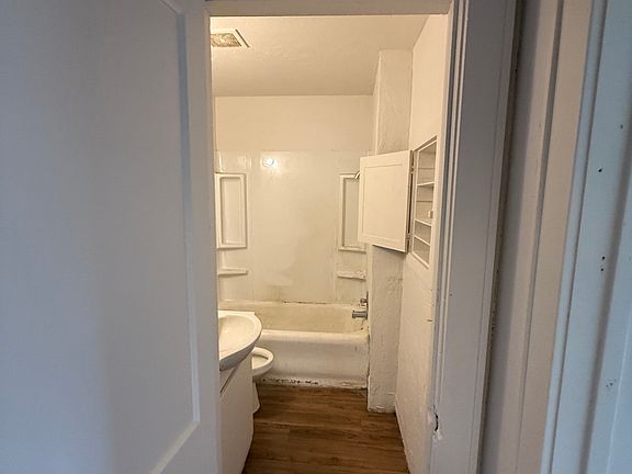 1 bed 1 bath duplex. Unit has just been repainted, does have central heat but window units for cooling.