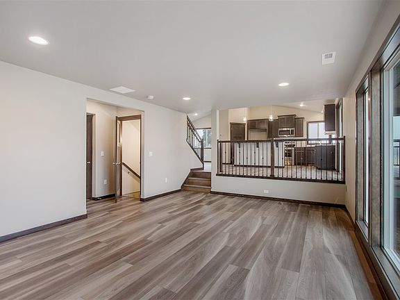 New Condron Homes Story and a half in the popular Pine Ridge gated community.Mead schools.Open and Bright floor plan. Quartz kitchen counter tops.4bdr/3bth.Large covered deck overlooking unusually large lot! 3car garage. HOA fee's only $35 per month! Convenient and secure location. Just Completed, see it today before it's gone !