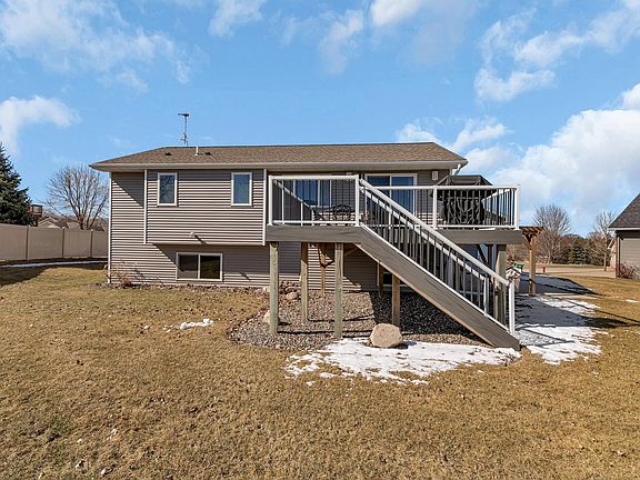 Nestled in a low-traffic cul-de-sac, this beautiful home offers an ideal blend of comfort, modern amenities, and thoughtful design. Over the past five years, meticulous care and attention to detail have gone into enhancing both the functionality and aesthetics of this property. New seamless rain gutters and a concrete driveway offer long-lasting durability, while an in-ground sprinkler system keeps the fully landscaped yard lush and green. Enjoy peaceful evenings soaking in the three-person hot tub or entertain guests on the spacious 16.5' x 25' concrete patio beneath the charming pergola or on the maintenance-free composite 16x16 deck, perfect for relaxing or entertaining, with speakers thoughtfully mounted on the side of the house. For additional storage, a 10x12 Dakota storage shed stands ready to house all your outdoor gear.