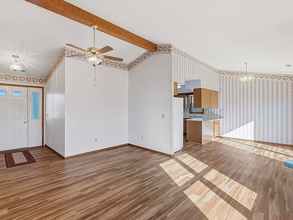 Charming one-story home on a cul-de-sac in Ossian, set on nearly a quarter-acre lot! This open floor plan features a living room flowing into the dining area and kitchen, complete with new flooring, vaulted ceilings, a breakfast bar, updated appliances, and easy outdoor access to a large yard with an open patio. The home offers 3 bedrooms with new carpet and 1.5 baths, including a primary ensuite. Additional highlights include a two-car attached garage with shelving and workshop space, a newer walk-in shower, an updated patio door, and freshly planted low-maintenance landscaping!