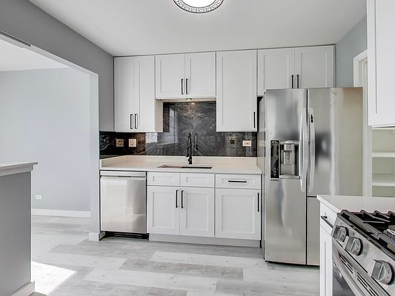 Welcome to Hanover Court in Schaumburg's sought-after Gatewood community by Lexington Homes. This fully renovated first-floor 2-bed/1-bath home blends fresh style with everyday convenience, set on a quiet cul-de-sac with a private 1-car garage and in-unit laundry. Step inside to new luxury vinyl plank flooring and fresh paint throughout. The standout kitchen shines with quartz countertops, brand-new white cabinetry, a modern tile backsplash, and a complete LG stainless package (gas range, microwave, dishwasher, refrigerator) plus new sink/fixtures and a shelved walk in pantry. The spa-fresh bath features a new Kohler tub, modern tile, black fixtures, a granite-top vanity, and updated lighting. Bright, cheerful, and truly move-in ready. Enjoy Gatewood amenities - parks, playgrounds, and a sparkling pool - along with unbeatable access to shopping, dining, and commuting: minutes to Woodfield Mall, Metra, major highways, and O'Hare. Experience the allure of 609 Hanover Court - an exceptional home for owners or investors alike.