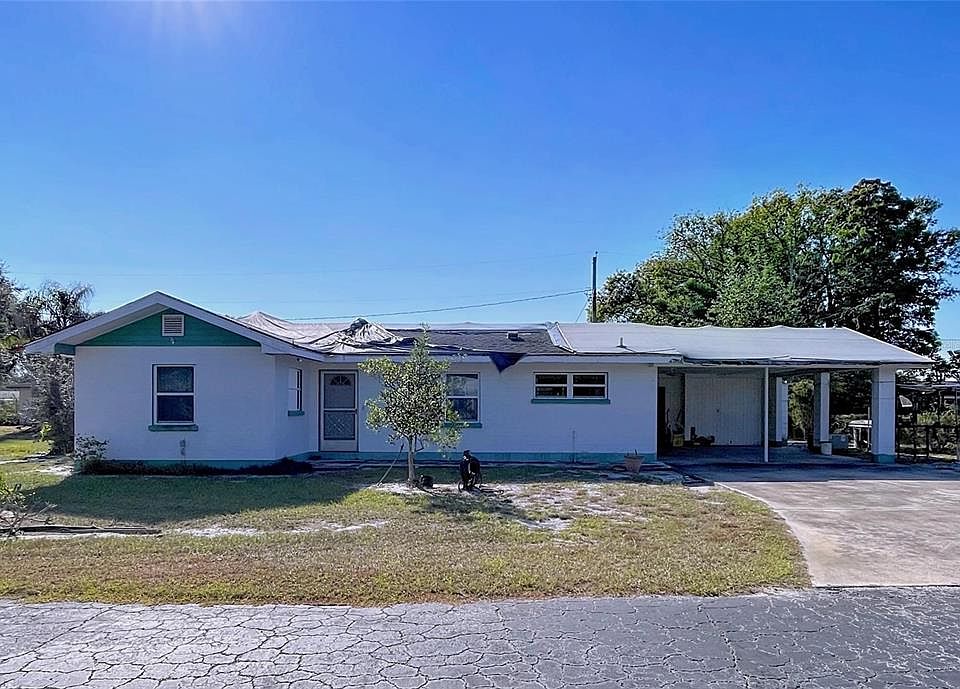 Investor or DIY renovation opportunity! This block-constructed home sits on a generously sized 0.81-acre fenced lot in a convenient Lakeland location. The property features an attached 2-car carport with workshop/storage space and laundry hook-ups, plus a detached carport and additional aluminum outbuilding, offering ample parking and storage options. A long paved driveway accommodates multiple vehicles, trailers, or equipment. Situated just a short walk from Crystal Lake Elementary and minutes from Southeastern University, shopping, and the Polk Parkway, this property offers strong potential for rental, resale, or personalized improvement. Sold As-Is. Cash offers only. Bring your vision and unlock the potential of this diamond in the rough!