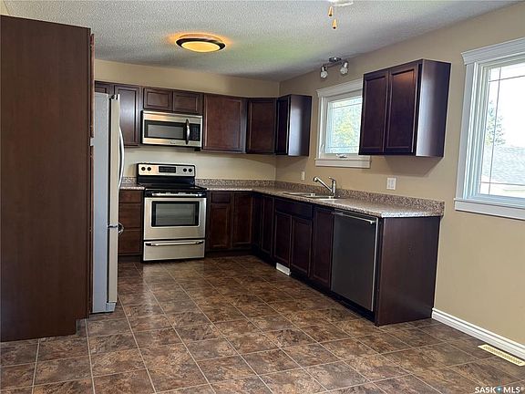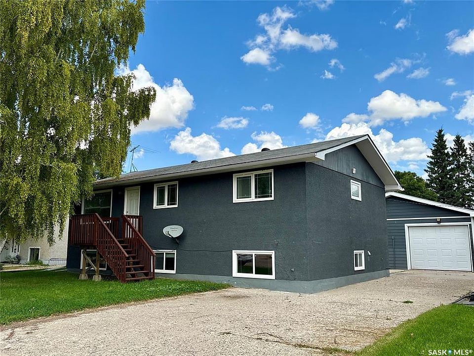 Welcome to Colonsay! Just a quick half-hour drive from Saskatoon, this home is a great find for a young family or anyone looking for a place with income potential and a fantastic workshop. The main floor features 3 good-sized bedrooms, a 4-piece bathroom with tiled flooring, and a spacious kitchen/dining area with upgraded cabinets and stainless steel appliances, perfect for family dinners and gatherings. At the back entrance, you’ll find a large mudroom with plenty of closet space for both levels. Downstairs, the basement has its own large kitchen and dining area that opens into the living room, all brightened by big south-facing windows. There are also 2 bedrooms, a 4-piece bathroom, and shared laundry in the utility room. Updates include a mid-efficient NG furnace, a newer hot water tank, and extra storage space. Outside, you’ll love the massive heated garage/workshop (26’ x 40’) with a new garage door, new heater, and durable metal roof ideal for projects, storage, or toys. Could also be used for separate income potential! The backyard also has a concrete patio, perfect for barbecues and relaxing. This property is a solid opportunity with space, updates, and income potential.