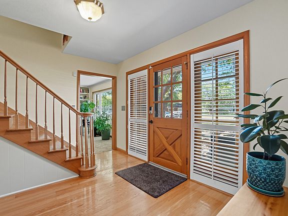 This beautiful home is full of character throughout! Spacious living room features a cozy fireplace with custom built-ins. Thoughtfully designed kitchen boasts stainless appliances, tile backsplash, pantry and an adjacent dining room. Both main and upper levels offer two bedrooms and a full bath, perfect for flexible living arrangements. The walk-out basement adds great living space with a large recreation room with fireplace, bonus/5th bedroom with half bath, and a large unfinished storage area with laundry. Enjoy the fenced yard, patio, and raised garden beds—perfect for outdoor living!