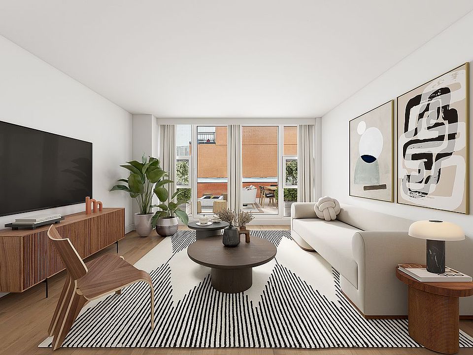 Situated in a low-rise boutique building, the condo ensures a tranquil living experience while being conveniently close to the heart of the action. Enjoy a BBQ on the common roof deck as you watch the sunset over the skylines of Manhattan, downtown Brooklyn and the World Trade Center. The building features a virtual doorman, video intercom, secure bike storage in basement.