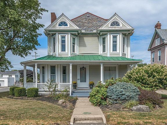 Featuring a unique layout with two stairways leading upstairs, plus an additional stairway to the unfinished attic, offering endless potential for a future bedroom, office, or bonus living space. Spacious front porch equipped with a porch swing. The backyard is a true retreat—fully fenced with a gas firepit, perfect for cozy evenings. The historic carriage house outbuilding adds character and functionality, while the gardens boast strawberries, tomatoes, asparagus, and rhubarb for the home gardener. Driveway was recently graveled August of 2025 Located in the heart of Circleville, this home is just a short walk to the library, downtown shops and dining, newly updated Ted Lewis Park and the famous Circleville Pumpkin Show.
