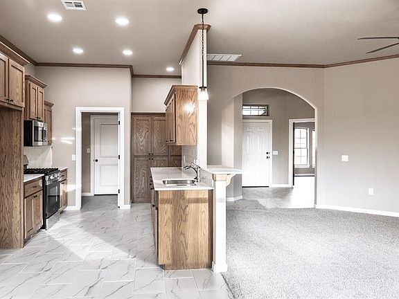 Welcome home to brand-new comfort in the highly desirable Hunters Hill community! This beautifully crafted 4-bed, 2-bath home blends timeless brick charm, soft neutral interiors, and modern conveniences designed for today’s buyer. With a three-car garage, open living concept layout, and quality finishes throughout, this home delivers both style and function.Warm wood cabinetry, clean lines, and a bright kitchen that flows effortlessly into the dining and living room. A brick fireplace anchors the space, adding warmth and character.Large windows bring in beautiful natural light, making the entire home feel bright, open, and welcoming.
