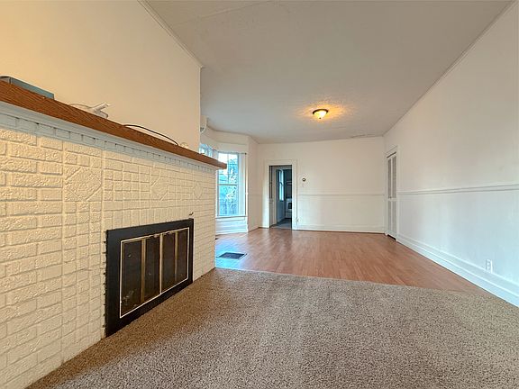 This spacious apartment offers a bright and inviting atmosphere with large, open living areas. The expansive open-concept living and dining room features oversized windows that fill the space with natural light, a charming fireplace, and built-in bookshelves that add both warmth and character.