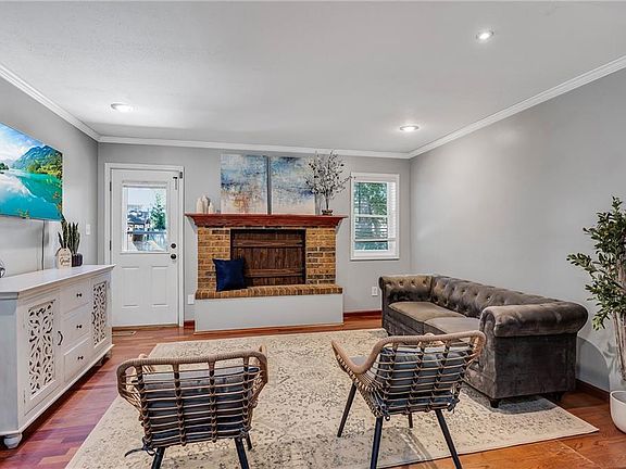 This 3-bedroom, 2.5 bathroom home features a bright and inviting layout with stylish updates throughout. The living room boasts fresh paint, rich wood floors, and a cozy brick fireplace that anchors the space. The spacious kitchen is designed with ample cabinetry, updated countertops, under-cabinet lighting, and stainless-steel appliances—ideal for everyday cooking and entertaining.
