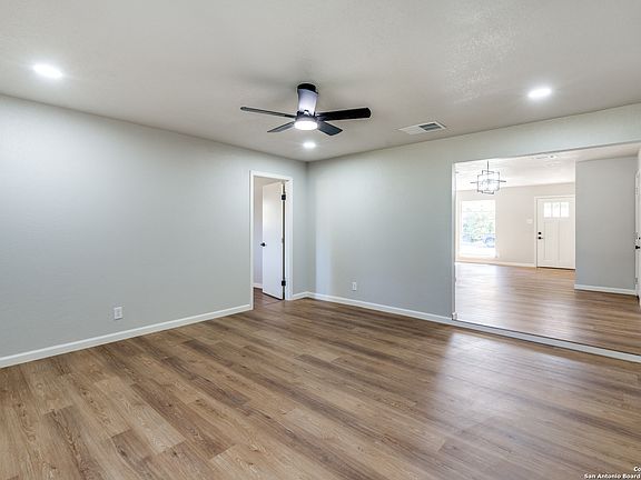 This beautifully remodeled 4-bedroom, 2-bathroom home combines contemporary style with comfort and convenience. Boasting an inviting, open layout and sleek, modern finishes throughout, this home offers a perfect blend of functionality and elegance. The spacious living areas are ideal for both family gatherings and quiet nights in, while the updated kitchen features updated cabinetry, quartz countertops, and stainless steel appliances. The generous primary suite including a private en-suite bathroom is split from the three additional bedrooms offering plenty of room for family, guests, and did I mention there is also a large dedicated home office?! Energy efficiency is a key feature, thanks to the solar panels installed to help you save on energy bills and live more sustainably. Outside, you'll enjoy a decent sized, fully fenced yard with mature trees-perfect for outdoor activities, gardening, or just relaxing. This property is ideally located just minutes from Randolph Air Force Base, H-E-B, and a variety of shopping and dining options. Major highways are easily accessible, making trips to San Antonio a breeze. Families will appreciate the proximity to a highly sought-after school district. Don't miss the chance to make this beautifully updated home yours-schedule a tour today!