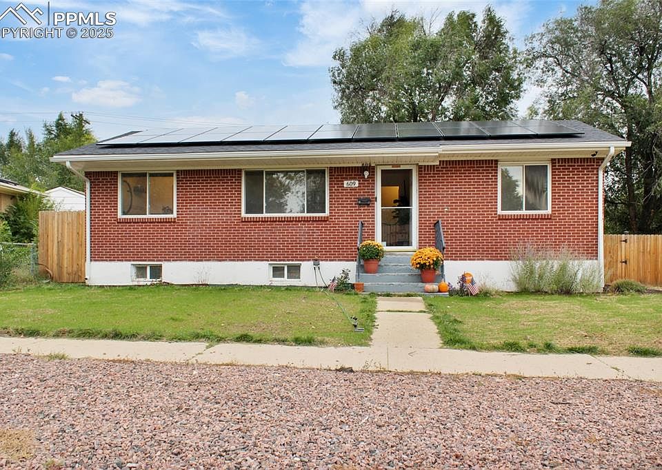 Welcome to this spacious ranch-style home in the heart of Colorado Springs. Offering 5 bedrooms, 2 bathrooms, and over 2,100 square feet of living space, this home combines mid-century charm with thoughtful updates. The main level features three bedrooms, original hardwood flooring, and a bright kitchen with modern appliances that opens to the living and dining areas. The finished basement provides a large master suite, another bedroom and flexible space for a family room, office, or gym. Major systems have been updated with a newer water heater, furnace, and electrical panel, and the home is equipped with central air conditioning for year-round comfort. Outside, enjoy a private backyard with a privacy fence, gate that opens to the alley, large storage shed, and room to garden or entertain. Solar panels and a newer roof add energy efficiency and peace of mind. Conveniently located near schools, shopping, dining, and parks, this move-in ready home offers space, updates, and value all in one!