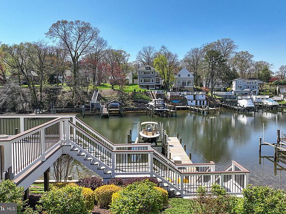 Welcome to this stunning, fully rebuilt (2021) waterfront property on the Magothy River —where thoughtful design meets effortless Chesapeake Bay living. With 3 bedrooms and 2.5 baths, this home blends modern coastal finishes such as luxury vinyl plank flooring with timeless comfort across a bright, open layout. The waterfront amenities are super: large deck overlooking the creek, private pier with 6 ft water depth and a 10,000 lb lift, and a grassy waterside yard that's perfect for a picnic and small boat storage. Take your boat for a quick ride down the river to have lunch at The Point. The heart of the home is the great room, including the gourmet kitchen, with a custom tile backsplash, soft-close drawers, farmhouse sink, stainless steel appliances, a beverage fridge, and a custom wood-topped bar area. Here, the coastal design elements are effortless yet sophisticated. Contemporary light fixtures add a stylish touch, while the oversized island offers both functionality and a perfect spot for gathering. The kitchen opens seamlessly to the seating area with its stunning shiplap vaulted ceiling, eye-catching wooden ceiling fan, and doors that open directly to the waterside deck. There are two decks to enjoy outside, one just outside the great room and the other overlooking the water. The main level also includes a dining room with fabulous chandelier, mudroom, and powder room. The primary suite is a serene escape with a private seating area overlooking the river, large walk-in closet and a spa-like, ensuite bath. Enjoy separate sinks, a walk-in shower with multiple shower heads and a built-in bench, and natural stone flooring for that luxurious, spa-inspired feel. There are two more bedrooms, both bright and sunny, with the same LVP flooring. They share the hall bathroom upstairs. The fully finished lower level has the laundry room and offers flexible living space for a home theater, rec room, home office, or gym.