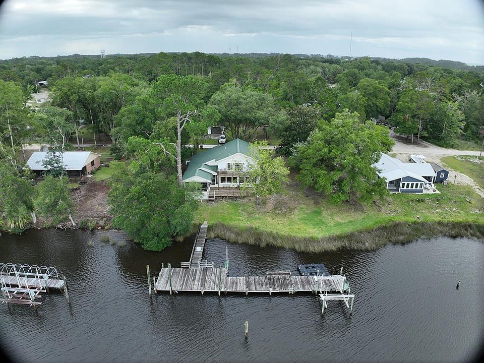 Situated near downtown Carrabelle. Riverfront home with large private dock and boat lift on deep water. Situated on 2 riverfront lots. 4 bedroom, 2 bathroom home with open floor plan. Huge screen porch overlooking the Carrabelle River, plenty of room to add outdoor kitchen / bar space. Upstairs master bedroom is oversized and could be remodeled to include another bedroom. Large bonus room upstairs. 2 car garage and storage area for freezers, refrigerators and fishing gear. Large 2 stall shed / barn situated on 5 lots. Perfect for boats and trailers and all the toys! 10 minutes to the bay by boat. Home is an open book and ready for new owners touch. Lots of potential for improvements and upgrades. Upstairs bathroom and master were in process of being remodeled. Need paint and ceiling refinish.