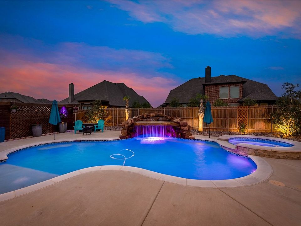 - Pool features: Fenced, Gunite, In Ground, Outdoor Pool, Pool, Pool/Spa Combo, Waterfall
