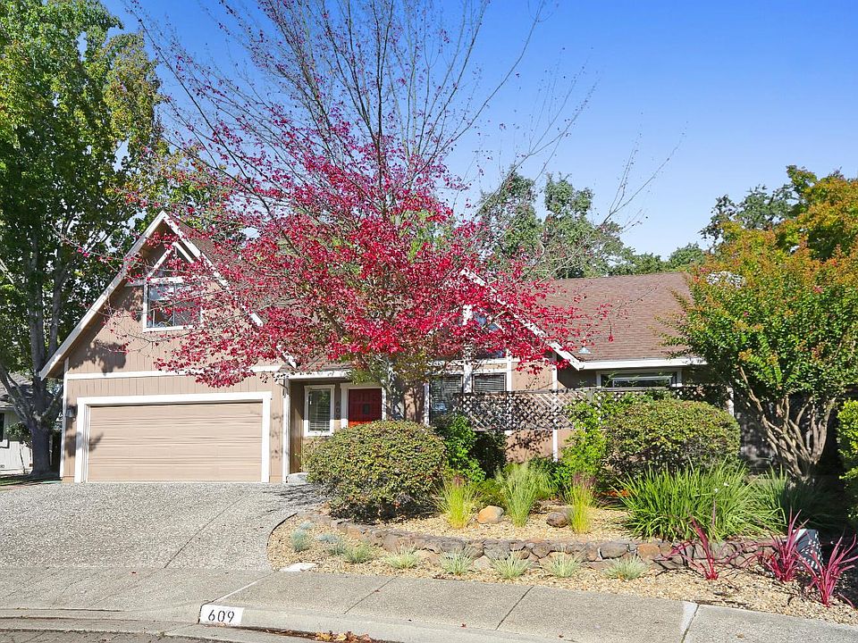 Nestled at the end of a quiet court, this beautiful home offers over 2,000 square feet of comfortable, updated living space on a large private lot in a convenient El Verano location just minutes from shopping, schools, and all that Sonoma Valley has to offer. Step outside to your backyard oasis, where lush landscaping and a sparkling pool create the perfect setting for relaxation and entertaining. A charming pergola and generous patio area invite year-round outdoor living in complete privacy. The recently updated kitchen features custom cabinets, quartz countertops, a hammered copper farmhouse sink, KitchenAid appliances, and encaustic tile flooring. The first floor showcases hardwood floors and a tongue-and-groove cathedral wood ceiling that adds warmth and character. The remodeled lower-level primary suite offers a luxurious retreat with a freestanding soaking tub, shower, and custom tile work. A bonus room on the main floor provides flexibility for a home office or optional fourth bedroom. Upstairs, are two spacious bedrooms with LVP flooring, and a remodeled bathroom with elegant tile finishes. With its blend of style, comfort, and thoughtful upgrades, this inviting home perfectly balances every functionality with resort-like living ready to enjoy from the moment you arrive