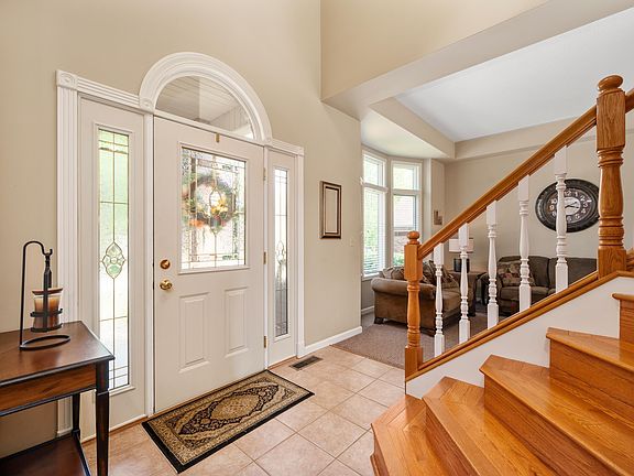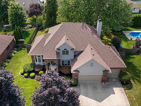 This custom-built home is situated in the sought-after Evergreen West neighborhood in Yorktown and boasts 4 bedrooms, 3.5 bathrooms, and a large finished basement. The professionally landscaped yard enhances the great curb appeal of this impressive property. The spacious eat-in kitchen showcases hickory cabinets with generous storage, a stunning backsplash, and an island for preparation and additional storage. The formal dining room with hardwood flooring, living room, and family room with a coffered ceiling are perfect for hosting guests. A front office offers a great work environment with an enjoyable view. Natural light floods the entire home, creating a warm and inviting atmosphere. Upstairs, there are 4 spacious bedrooms with hardwood flooring and ample closet space, including the master bedroom with an en-suite bathroom. The finished basement provides a versatile space with a full bathroom and a tornado room for added safety. The fenced-in and private and beautiful backyard is ideal for outdoor gatherings and relaxation. Conveniently situated near local walking trails, Yorktown schools, Yorktown YMCA Ball State University, Ball Hospital, and local shopping and dining with easy access to Interstate 69. Recent updates include a new roof in 2020, new gutters in 2020, garbage disposal in 2021, fixtures in 2017, water softener in 2017, new heating/cooling unit and added second zone upstairs in 2016, water heater in 2016, and oak hardwood on stairs December, 2015.
