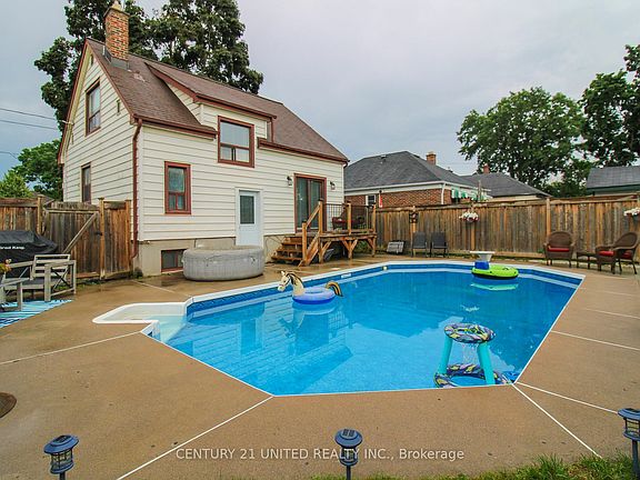 Located in the south end of Peterborough, this well-maintained 1 1/2 storey home is just a short walk to schools, parks, trails, and shopping. As you enter the home you'll be greeted by a bright and modern kitchen with ample usable space. The main level features hardwood floors in the large living and dining area. From the dining area you can walk out to the deck overlooking the in-ground pool and the privacy fenced lot. The detached garage has been transformed into a bar/social space, adding a unique and inviting area for entertainment. Upstairs you will find new flooring and fresh paint in the 2 bedrooms. The lower level of the home boasts a finished rec room with brand new flooring, an office/guest bedroom, and a spacious utility room including laundry facilities. The dining room can be converted back to a fourth bedroom if needed.