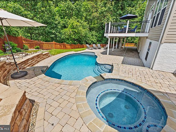 STUNNING LEESBURG RETREAT BACKING TO BALLS BLUFF PARK – PRIVATE POOL, HOT TUB & BREATHTAKING VIEWS! This is the dream home you’ve been waiting for—a rare sanctuary where beauty, comfort meets nature. Nestled at the end of a quiet cul-de-sac in the coveted Potomac Crossing neighborhood, this gorgeous brick-front colonial offers the perfect blend of privacy, updates, and an unbeatable location. Backed directly by Balls Bluff Battlefield Regional Park, your backyard opens to hundreds of acres of pristine woodlands with unobstructed views of nature, abundant wildlife, and serene walking trails. You’ll feel like you’re a world away, yet just minutes from everything Leesburg has to offer. From the moment you arrive, you'll be captivated by the handsome brick front home with a stone walkway and welcoming front entry, setting the tone for what’s inside. Greet friends and family into the main level where refinished hardwood floors flow through the formal living, dining room and kitchen. Enjoy a main level office as well as bright and spacious kitchen with ample white cabinetry, Corian countertops, a pantry and all-new stainless steel appliances! The kitchen opens directly to a breakfast room and inviting family room with built-ins and a wood-burning fireplace, perfect for relaxing evenings or casual entertaining. Upstairs, the owner’s suite is a true retreat, complete with soaring vaulted ceilings, two walk-in closets, and a spacious ensuite bath featuring a tiled shower, soaking tub, and dual vanities. Three additional secondary bedrooms share a well-appointed full bath, and the convenient upper-level laundry room makes everyday living a breeze. The fully finished walk-out lower level offers amazing versatility with a large recreation room, 5th bedroom, full bath, bonus room, and plenty of storage—ideal for guests, hobbies, or just relaxing! But the real star of this home is the incredible outdoor space. Step outside to a massive and spectacular composite deck (2010) with stairs leading to a resort-style pool featuring a waterfall spilling from the integrated hot tub, surrounded by a multi-tiered paver patio, lush professional landscaping, and a fully fenced yard. It's a true backyard oasis, perfect for hosting, relaxing, or simply enjoying the peaceful natural setting that surrounds you. Additional updates include a new roof (2020), new water heater (2022), modern paint throughout, sleek black lighting fixtures, new carpet and LVP flooring in the lower level. It's ready for move-in! Enjoy all the community amenities of Potomac Crossing—including a community pool, access to parks, and trails—while being just minutes from Downtown Leesburg, the Leesburg Premium Outlets, major commuter routes, Dulles Airport, and just 30 minutes to Tysons Corner and Reston Town Center. This home checks all the boxes—location, private lot, updates, and outdoor living. Don’t miss your chance to own this extraordinary property in one of Leesburg’s most desirable communities!