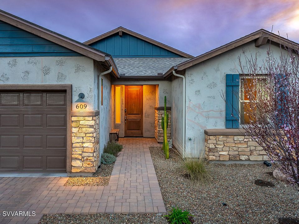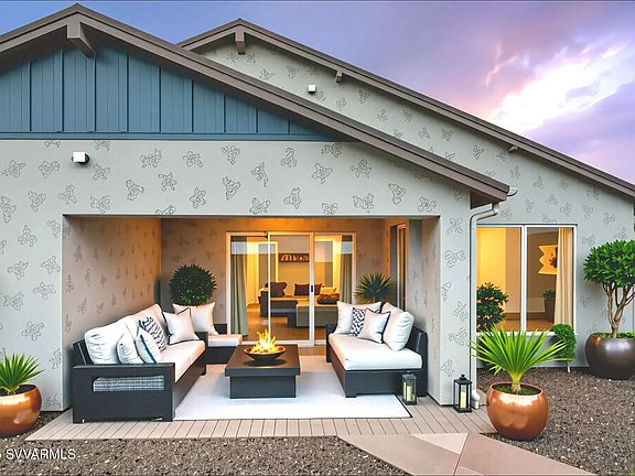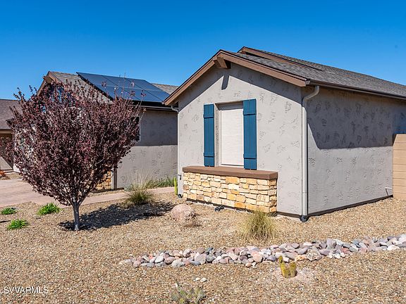 Refined 4 bedroom home Warm and Inviting the ideal mix of luxury and practicality. The grand great room dazzles with 10-ft ceilings, wood beams, and a breathtaking 9-ft wall of glass. Chef's kitchen features maple cabinets, granite island, custom tile backsplash and premium appliances. Owner's suite offers Red Rock views and spa bath with soaking tub. Enjoy easy clean up with high end tile throughout (no carpet, low-maintenance yard, freshly painted exterior and owned solar + battery storage. Entertain effortlessly on the custom paver patio. Split floorplan provides ideal privacy. Minutes to the charm of Historic Clarkdale, the community park and a short drive to Sedona's attractions. A move-in-ready retreat with no rental restrictions awaits. Say YES to this address