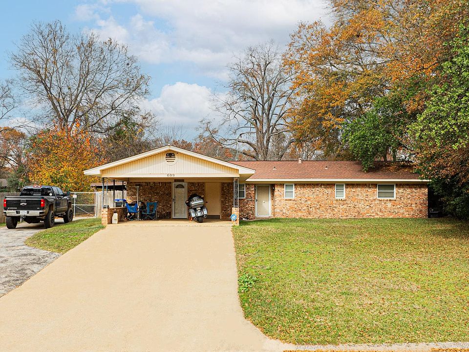Welcome to this inviting 3 bedroom, 2 bath home located in Pine Tree ISD. Set on a generous lot, the property offers an additional driveway with side parking - ideal for hosting guests or accommodating extra vehicle and recreational equipment. Inside you'll find a warm and welcoming sunken living area highlighted by new laminate flooring that flows seamlessly throughout the home. The thoughtfully signed kitchen features custom pull-out drawers, abundant cabinet space, and a convenient small island that enhances both function and style. Each bedroom is spacious and designed for comfort, while the updated bathrooms showcase modern finishes and thoughtful upgrades. Enjoy the versatility of the screened-in porch, ideal for relaxing mornings or evening gatherings. The perfect man cave! The fenced in backyard, complete with dog pen, provides plenty of room for pets to roam safely. Notable upgrades include newly installed roof and windows (about 7 years old), and an HVAC system replaced in 2011. Large purchases taken care of and offering peace of mind for any new homebuyer. This delightful home is conveniently located near shopping, dining, and all the amenities you need.