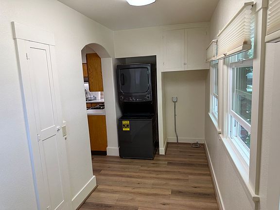 Two offstreet parking spacesCedar closetsCovered carportStackable washer and dryerCorner lotNew laminate flooringFully restored retro bathroom