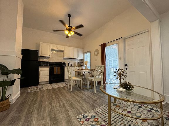 As you step inside, you're greeted by an inviting open concept layout with soaring ceilings, creating an airy and spacious ambiance. Your private front porch sets the stage for serene relaxation, while inside, a cozy living and dining combo seamlessly flows into a full kitchen, perfect for entertaining or quiet evenings at home.