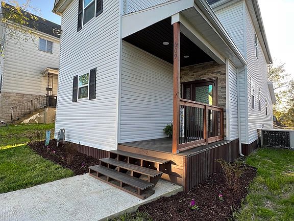 Completely renovated. Move in ready. New porch with impressive entry door and 1 side light that opens into the foyer. Large, spacious kitchen with ample cabinetry, granite countertops, and new smart stainless steel appliances. Kitchen is light and airy with eat in space and new hard wood floors. Main space has open concept great for entertaining. Laundry room conveniently located on first floor with powder room and easy access to 2 car personal parking area. Primary bedroom is located on main floor and opens into primary bath that contains tiled shower, dual vanity, and soaker tub with quick fill faucet. Second floor houses 3 sizeable bedrooms with each having full, private bath. Home has many new amenities; roof, 2 hot water tanks, windows, hvac, siding, gutters, wiring with 200 amp service, and new plumbing throughout. Plenty of attic space for storage. Crawl space accessible from side yard.