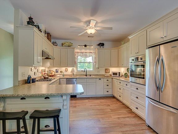 Have your own slice of heaven! Bring your horses and move right in to enjoy this property that was lovingly designed with every detail in mind. Everything you need is readily accessible under one roof - home, barn and garages. The home features an open living area with a 20'+ vaulted ceiling and abundant natural light, a spacious kitchen with custom cabinetry and SS appliances that remain, a primary bdrm with ensuite bath, and a second bdrm with an adjoining hall bath. Tucked away in plain sight is a convenient closet office in the living room. Step outside to enjoy the beautiful gardens surrounding the inviting inground saltwater pool. The wrap around porches means there's shade no matter what time of day you're outside. Just steps away is the attached barn fully-lined with beautiful tongue and groove wood with 3-4 stalls complete with mats and fans. Each stall has a dutch door and covered awning leading to a selection of paddocks both with grass and dry lot options. The adjoining tack room can double as a guest suite that includes a sink, room for a mini fridge, and a half bath. Opposing the barn is the garage with 2 fully-finished garage spaces with automatic door openers, and a third garage with a single door to fit a larger vehicle plus store equipment or hay, or have a workshop. To lessen the impacts of inclement weather, this home includes a generator outlet with a surge protector and a full lightening rod protection system. Outside you'll find a treasure of unusual plants that keep the yard in color nearly all year. A sprinkler system services the back and front yards, and an invisible fence system will keep the dogs contained in desired spaces. The property is fully perimeter fenced with no climb wire so horses and dogs can roam the acreage safely. This home is in the Windsor Trace neighborhood which includes dedicated riding and carriage driving easements. This close-knit community enjoys many equestrian and neighborly activities throughout the year. If making new friends is on your agenda, it's easy to do here! The property is currently serviced by ATT internet and Carolina Connect fiberoptic may now be available for installation. Don't wait to see this special property!