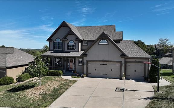 Stunning Two Story located just minutes from Smithville Lake and Paradise Point Golf Course! 5 bedrooms, 3.5 bath and 3 car garage settled in Cedar Lake Estates in Smithville schools with access to several HOA community amenities: swimming pool, pond, and walking path. A cozy living room space with floor-to-ceiling windows with fireplace. The master bath is a dream with a huge walk in shower, large jetted tub, double sink vanity with additional vanity. A finished walk out basement with wet bar. A utility garage off the back yard, and an oversized deck with partial lake views. A true must see!