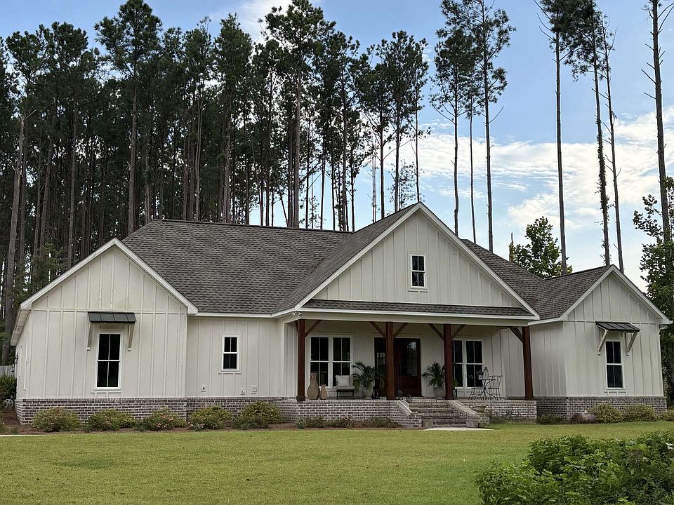 Custom built in 2023. ~ 2,700 sq/ft on 2.55 acres. Wooded lot peaceful & safe location. 4 spacious bedrooms big closets. 3 1/2 baths w/quartz countertops. Master bedroom has vaulted ceiling and master bath w/two separate vanities, soaking tub, separate water closet, custom tile shower w/wall & overhead shower heads. Large his/hers closet. Brick archway connects kitchen & family room. Kitchen has custom cabinets/large island, all w/quartz countertops. Large pantry, stainless steel appliances, & tray ceiling in dining area. Family room has vaulted ceiling & propane fireplace. Home also has office, linen closet, storage closet, large laundry room w/lots of cabinets. 2 car garage w/closet & pulldown ladder to attic storage. Wide baseboards & laminate floors throughout. Huge covered back porch w/stained wood ceiling. Front porch has solid wood columns & stained wood ceiling. Partially fenced backyard, private wooded land behind house. Sprinkler system in front yard. Septic tank, city water
