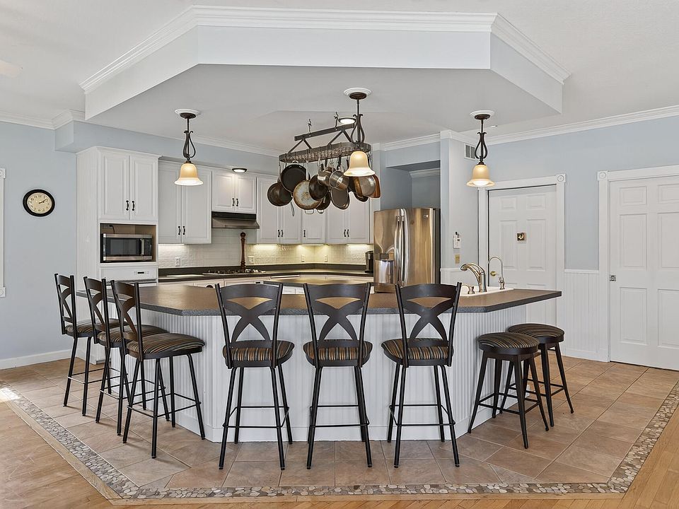 With a six-car attached garage (3 up, 3 down), there’s plenty of room for all your vehicles, toys, and hobbies. Outdoors, adventure awaits: bring your canoes, kayaks, and fishing poles to make the most of your waterfront living